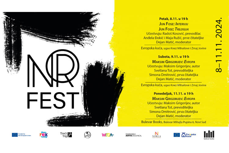 Prvo veče Nord festivala, koje će se održati 8. novembra u Evropskoj kući sa početkom u 19 časova biće posvećeno dobitniku Nobelove nagrade, norveškom autoru Junu Foseu, a biće predstavljen njegov nedavno objavljeni roman Trilogija. U razgovoru će učestovati prevodilac Radoš Kosović, prve čitateljke Anđela Đokić i Maja Ružić, kao i Dejan Matić.