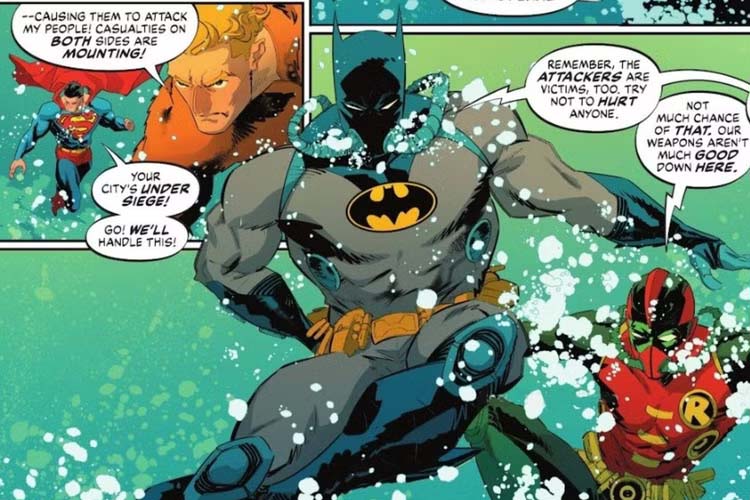 U najnovijem izdanju stripa Batman / Superman: World’s Finest #35, autora Marka Waida i Adriána Gutiérreza, Betmen i Robin zajedno sa Supermenom kreću u podvodnu avanturu kako bi pomogli Akvamanu i njegovom Kraljevstvu Atlantidi. Misteriozna kuga koja je zahvatila stanovnike Posejdona izaziva haos, a naši heroji moraju da se prilagode novim uslovima borbe.