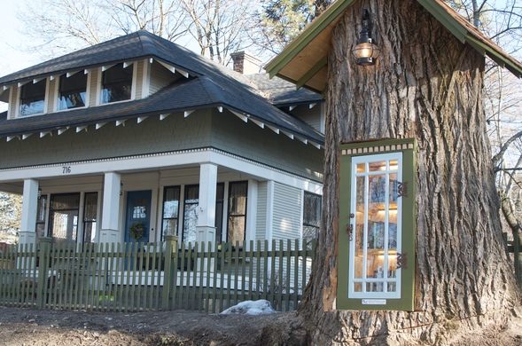 Šarli Hauard je tri metara visok panj drveta starog 110 godina u dvorištu svoje kuće pretvorila u slatku malu besplatnu biblioteku. Do ove biblioteke se dolazi preko niza kamenih stepenika, a zatim otvarate mala vrata načinjena od starog prozora koji se ljulja na svojim šarkama. Ovo stvara osećaj da smo u nekoj knjizi, a ne u realnom svetu.