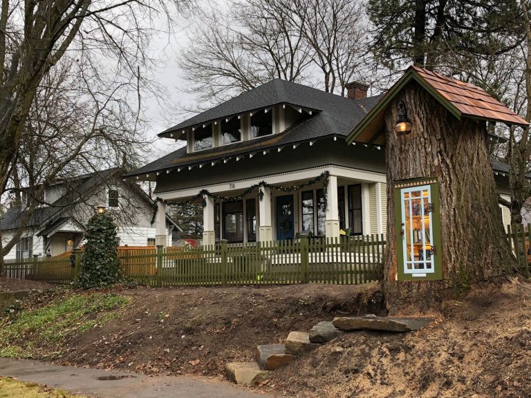 Jedna porodica iz Ohaja je ogromni panj u dvorištu svoje kuće preuredila u malu besplatnu biblioteku.