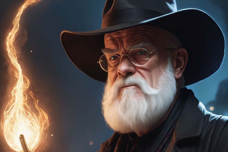 Teri Pračet je britanski autor koji je prodao sto miliona primeraka knjiga prevedenih na četrdeset i tri jezika. Osim gomile književnih nagrada, za svoj rad je dobio i deset doktorata i profesuru na čuvenom Triniti koledžu. Zbog ovog prvog je imao običaj da se, svojim kolegama doktorima, predstavlja kao doktor, doktor, doktor, doktor, doktor, doktor, doktor, doktor, doktor, doktor Pračet, a zbog drugog da nosi neobičan šešir koji je dobio tokom imenovanja.