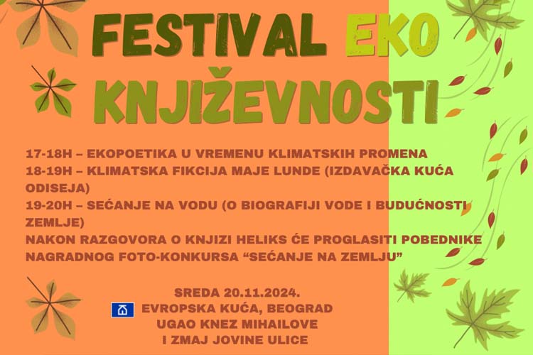 Festival EKO književnosti biće održan 20. novembra (sreda) u prostorijama Evropske kuće (ugao Zmaj Jovine i Knez Mihajlove).