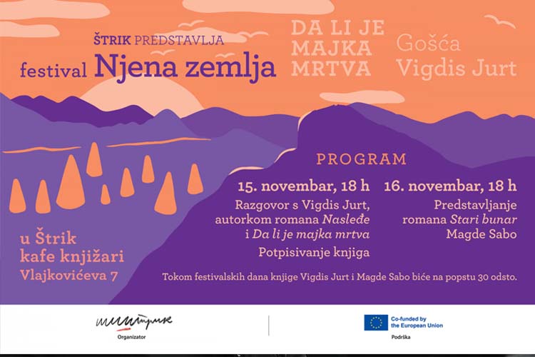 Izdavačka kuća Štrik 15. i 16. novembra oragizuje, sedmi po redu, festival Njena zemlja, koji od 2018. okuplja ljubiteljke i ljubitelje književnosti.
