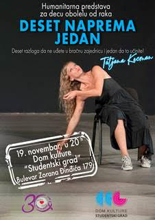 U petak, 19. novembra sa početkom u 20 časova na Velikoj sceni Doma kulture Studentski grad biće odigrana humanitarna predstava Deset naprema jedan za decu obolelu od raka u organizaciji Udruženja Uvek sa decom.
