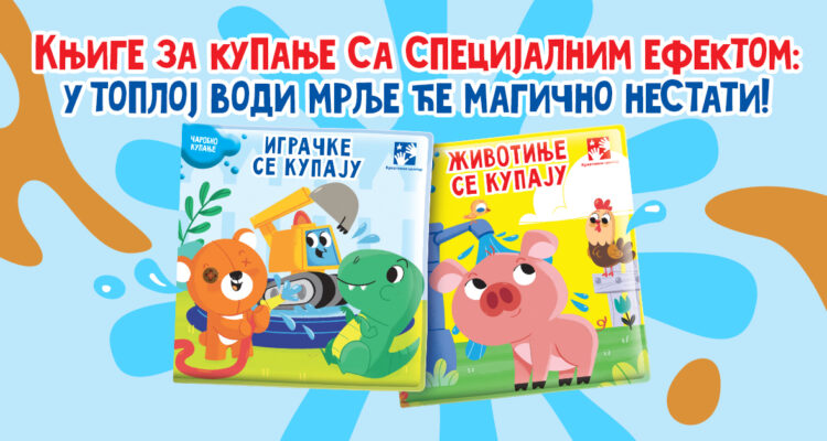Najmlađi čitaoci će uživati u zajedničkom kupanju s junacima knjiga Igračke se kupaju i Životinje se kupaju – plišanim medom, patkicom na točkićima, malim bagerom i dinosaurusom, kao i kokom, kravom, ovcom i prasetom.
