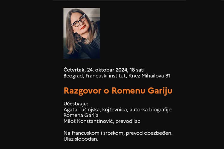 U vreme Beogradskog sajma knjiga, Francuski institut i Poljski institut u Beogradu organizuju gostovanje frankofone poljske književnice Agate Tušinjske. Nedavno je u Poljskoj i Francuskoj objavljena njena biografija čuvenog francuskog pisca i diplomate Romena Garija. Biće predstavljena u Francuskom institutu u Beogradu, u četvrtak 24. oktobra, od 18 sati.