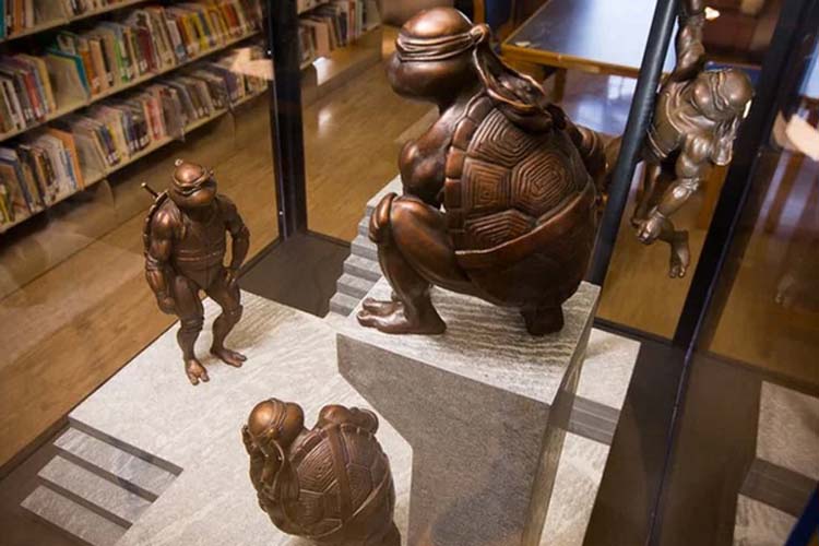 Kao znak zahvalnosti univerzitetu koji ga je oblikovao, Piter Lerd je 2013. godine poklonio bronzanu skulpturu nindža kornjača – Leonarda, Mikelanđela, Donatela i Rafaela – zajedno sa njihovim učiteljem Splinterom. Skulptura se danas nalazi na dvadeset i prvom spratu najviše univerzitetske biblioteke na svetu.