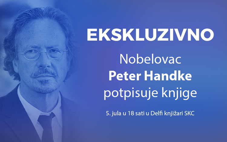 Nobelovac Peter Handke, koji je u kratkoj poseti našem glavnom gradu, družiće se sa čitaocima u knjižari Delfi SKC (Kralja Milana 48) u utorak 5. jula od 18 sati i potpisivati svoje knjige.