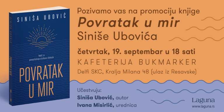 U četvrtak, 19. septembra od 18 sati u kafeteriji Bukmarker knjižare Delfi SKC biće predstavljena knjiga Siniše Ubovića „Povratak u mir“. Autor će svoj novi naslov predstaviti u razgovoru sa urednicom izdanja Ivanom Misirlić.