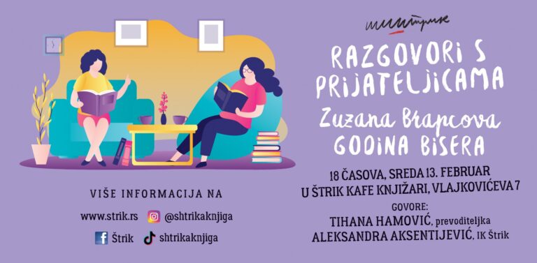 U utorak, 13. februara sa početkom od 18 časova u kafe knjižari Štrik biće održana promocija knjige Godina bisera Zuzane Brapcove.
