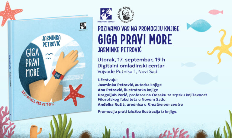 U utorak, 17. septembra sa početkom u 19 časova u Digitalnom omladinskom centru (Vojvode Putnika 1, Novi Sad) biće održana promocija knjige Giga pravi more Jasminke Petrović.