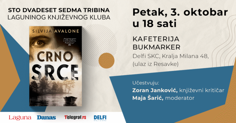 Tema 127. tribine Laguninog književnog kluba biće roman Crno srce italijanske autorke Silvije Avalone, a događaj će se održati u četvrtak, 3. oktobra, od 18 sati u Bukmarker kafeteriji knjižare Delfi SKC. O knjizi će govoriti Zoran Janković, filmski i književni kritičar.