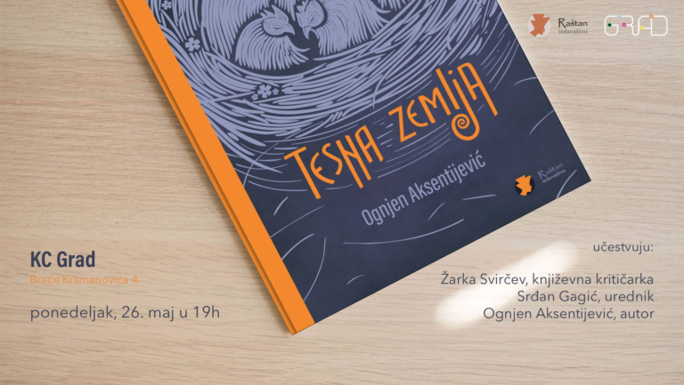U ponedeljak 26. maja biće održana beogradska promocija romana Tesna zemlja Ognjena Aksentijevića.