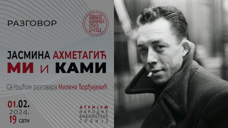 U četvrtak, 1. februara 2024. godine, sa početkom u 19 časova u Atrijumu Narodne biblioteke Srbije biće organizovan razgovor sa prof. dr Jasminom Ahmetagić na temu „Mi i Кami“. Sa gošćom razgovara: Milena Đorđijević.