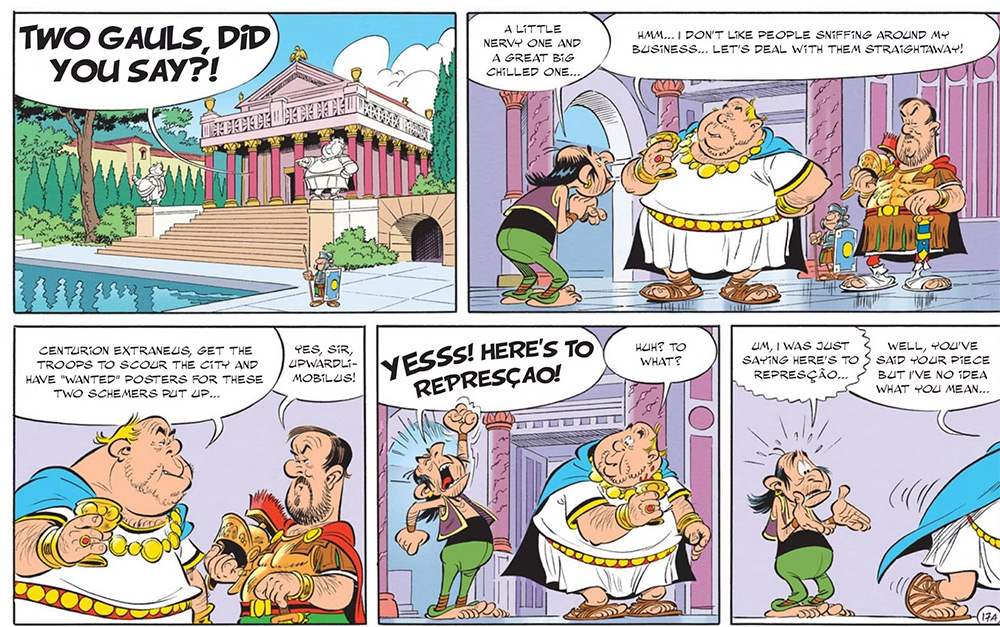 U najnovijem, 41. albumu serijala, „Asteriks u Luzitaniji“, koji je objavljen juče, pojavljuje se lik rimskog centuriona po imenu Ekstraneus, koji neverovatno liči na Džervejsa. Njegov zadatak je da „očisti“ antički Portugal od Gala Asteriksa i Obeliksa, ali se sve završava time da ga njih dvojica savladaju.