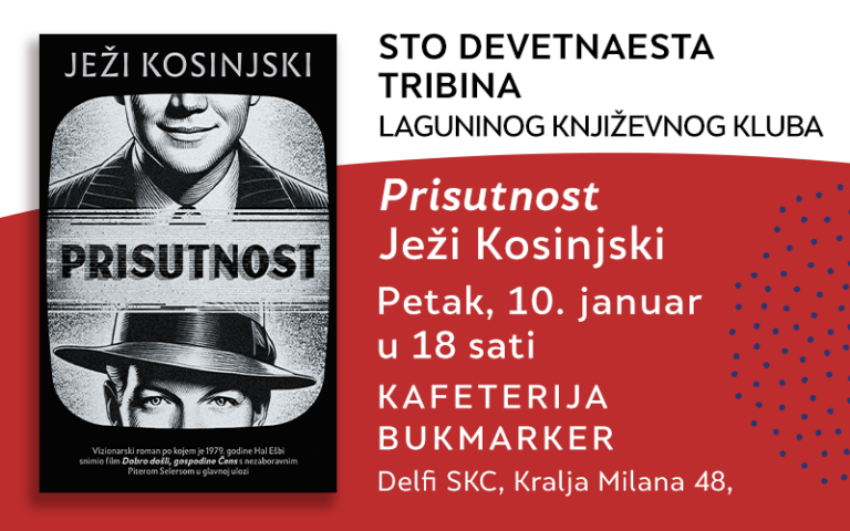 Vizionarski roman „Prisutnost“ Ježija Kosinjskog, po kojem je 1979. godine Hal Ešbi snimio film „Dobro došli, gospodine Čens“, s nezaboravnim Piterom Selersom u glavnoj ulozi, biće tema 119. tribine Laguninog književnog kluba, koja će se održati, u petak 10. januara 2025.