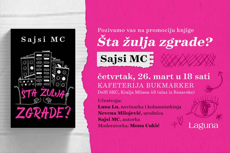 U četvrtak 26. marta od 18 sati u knjižari Delfi SKC biće predstavljena pesnička zbirka poznate reperke Sajsi MS „Šta žulja zgrade?“.
