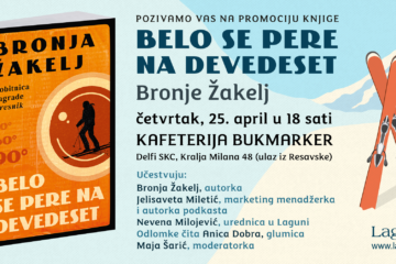 Tribina o romanu “Belo se pere na devedeset” Novosti 21/04/2024Slovenačka autorka Bronja Žakelj predstaviće pred beogradskim čitaocima roman „Belo se pere na devedeset“ u četvrtak 25. aprila od 18...