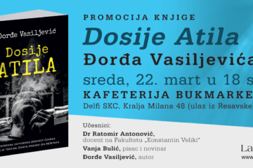 Promocija knjige “Dosije Atila” 22. marta Novosti 20/03/2023Knjiga „Dosije Atila“ Đorđa Vasiljevića potresna je zatvorska ispovest čoveka koji je trećinu života proveo iza rešetaka i biće predstavljena...