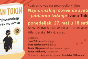 Promocija knjige “Najnormalniji čovek na svetu” Novosti 25/05/2024Povodom deset godina od objavljivanja kultne knjige Ivana Tokina „Najnormalniji čovek na svetu“, Laguna donosi novo izdanje sa ekskluzivnim intervjuom...