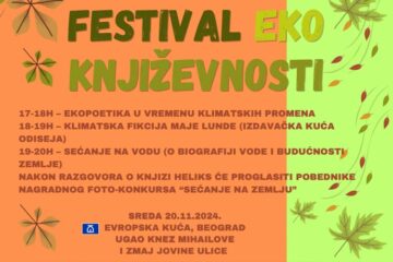 Festival EKO Književnosti Novosti 19/11/2024Festival EKO književnosti biće održan 20. novembra (sreda) u prostorijama Evropske kuće (ugao Zmaj Jovine i Knez Mihajlove). U okviru...