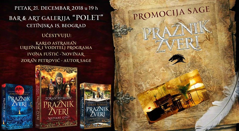 Promocija sage “Praznik zveri” Novosti 18/12/2018U petak, 21. decembra sa početkom u 19 časova u art galeriji Polet (Cetinjska 15) biće održana promocija sage Praznik...