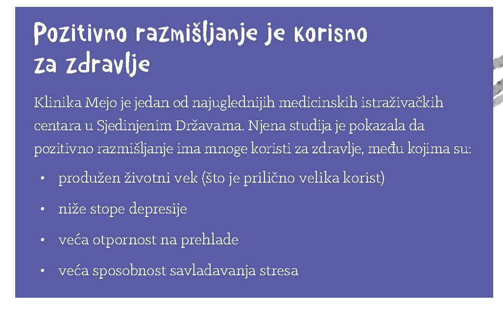 U izdanju „Kreativnog centra“, u okviru edicije „Mala psihologija“, objavljena je knjiga „Moć pozitivnog stava“. U pitanju je lako razumljiv i zabavan vodič za svakodnevni napredak, namenjen deci uzrasta od 9 do 12 godina. Školske obaveze, ali i vannastavne aktivnosti kojima deca danas posvećuju veliki deo svog vremena, često mogu biti vrlo izazovne. Strah od neuspeha i gubitak samopouzdanja pri suočavanju sa preprekama lako mogu ugroziti ostvarivanje čak i najsitnijih ciljeva. Uz „Moć pozitivnog stava“ deca će naučiti da na drugačiji način razmišljaju o svojim uspesima i neuspesima, usput izgrađujući razvojni mentalni stav uz koji će lakše moći da savlađuju prepreke i postižu zadate ciljeve, sa verom u sebe i sopstvene sposobnosti.