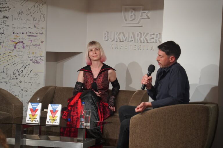 O ovom erotskom romanu pisanom u naizmeničnom troglasju, a koji govori o poliamoriji i prevazilaženju konvencija radi doslednosti sebi kao ultimativnom uslovu slobode i slavljenja života, govorila je autorka, a moderirao je pisac Bojan Krivokapić.